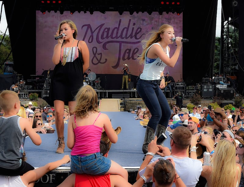 CRS 2015 - Day 3 NASHVILLE, TN - FEBRUARY 27: Tae Dye (L) and Maddie Marlow (R) of Maddie & Tae perform during the New Faces of Country at CRS 2015 on February 27, 2015 at the in Nashville, Tennessee. (Photo by Terry Wyatt/Getty Images) (Terry Wyatt/Getty Images)