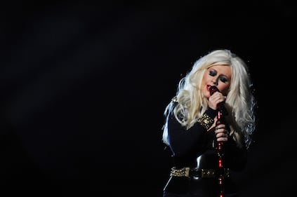 Christina Aguilera In Concert LOS ANGELES - JUNE 16: (U.S. TABLOIDS OUT) Recording Artist Christina Aguilera performs a song in concert from her album "Stripped" at STAPLES Center on June 16, 2003 in Los Angeles, California. (Photo by Robert Mora/Getty Images) (Robert Mora/Getty Images)