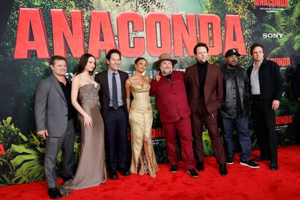 Los Angeles Premiere Of Columbia Pictures' "Anaconda" LOS ANGELES, CALIFORNIA - DECEMBER 13: (L-R) Steve Zahn, Daniela Melchior, Paul Rudd, Thandiwe Newton, Jack Black, Selton Mello, Ice Cube and Tom Gormican attend the Premiere of Columbia Pictures' "Anaconda" at The United Theater on Broadway on December 13, 2025 in Los Angeles, California. (Photo by Frazer Harrison/Getty Images) (Frazer Harrison/Getty Images)