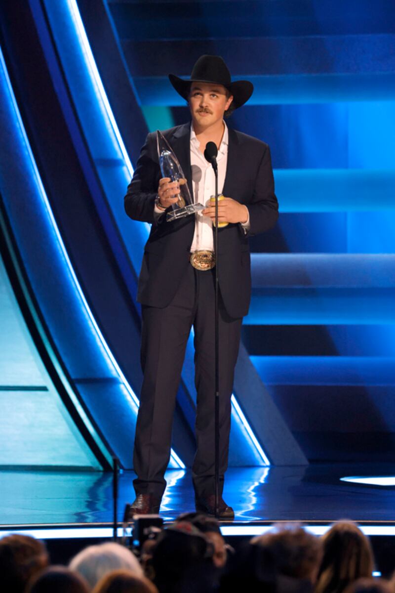 The 59th Annual CMA Awards - Show NASHVILLE, TENNESSEE - NOVEMBER 19: EDITORIAL USE ONLY Zach Top accepts the New Artist of the Year Award onstage during the 59th Annual CMA Awards at Bridgestone Arena on November 19, 2025 in Nashville, Tennessee. (Photo by Jason Kempin/Getty Images) (Jason Kempin/Getty Images)