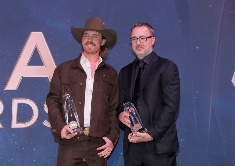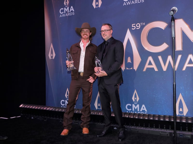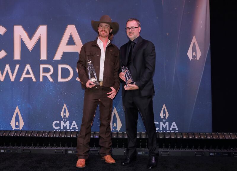 The 59th Annual CMA Awards - Press Room NASHVILLE, TENNESSEE - NOVEMBER 19: EDITORIAL USE ONLY Will Bundy and Jim Cooley , winner of the Single of the Year Award, pose in the press room during the 59th Annual CMA Awards at Bridgestone Arena on November 19, 2025 in Nashville, Tennessee. (Photo by Tibrina Hobson/Getty Images) (Tibrina Hobson/Getty Images)