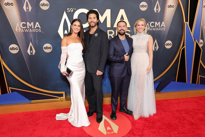 The 59th Annual CMA Awards - Arrivals NASHVILLE, TENNESSEE - NOVEMBER 19: EDITORIAL USE ONLY (L-R) Abby Law, Dan Smyers, Shay Mooney and Hannah Billingsley attend the 59th Annual CMA Awards at Music City Center on November 19, 2025 in Nashville, Tennessee. (Photo by Emma McIntyre/Getty Images) (Emma McIntyre/Getty Images)