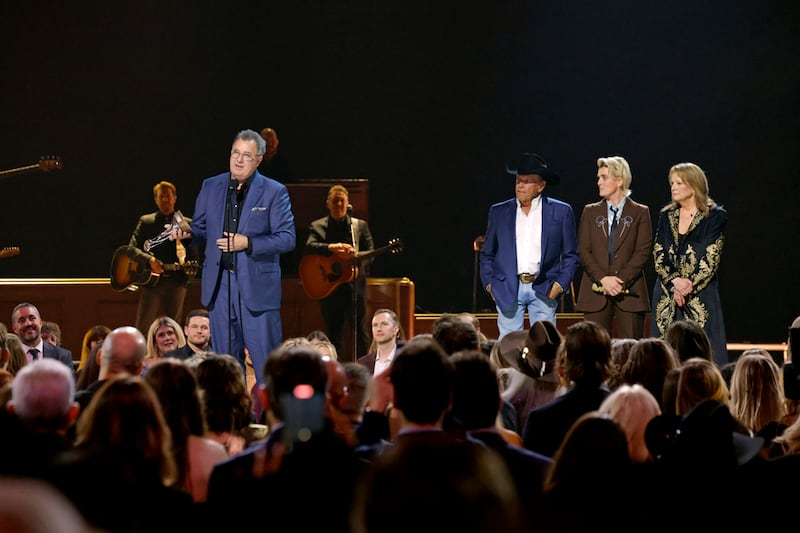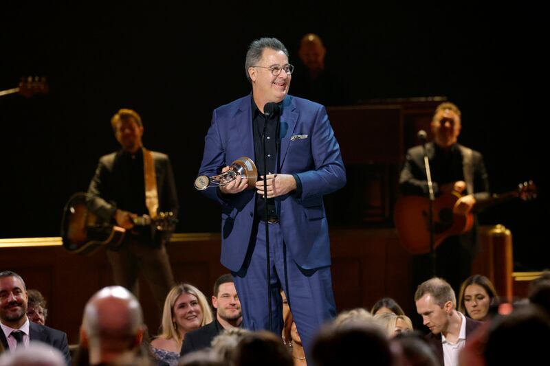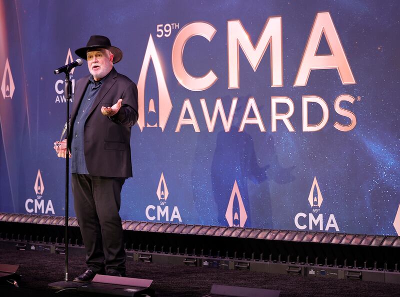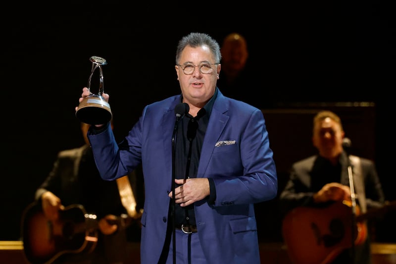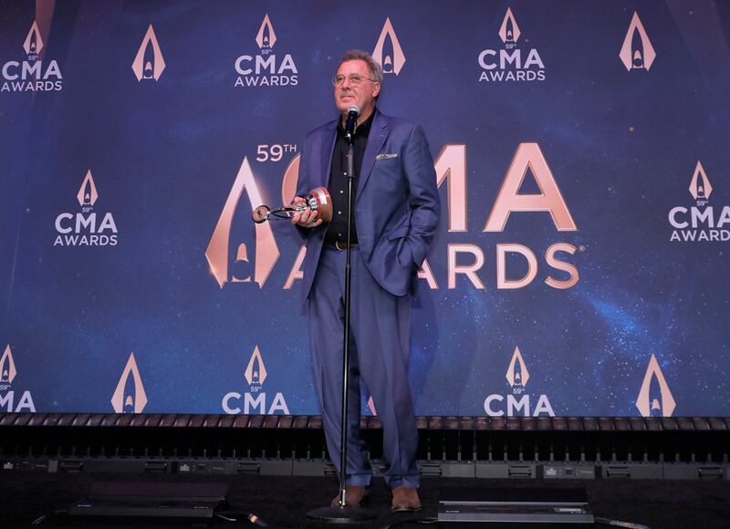 The 59th Annual CMA Awards - Press Room NASHVILLE, TENNESSEE - NOVEMBER 19: EDITORIAL USE ONLY Vince Gill, recipient of the Lifetime Achievement Award, speaks in the press room during the 59th Annual CMA Awards at Bridgestone Arena on November 19, 2025 in Nashville, Tennessee. (Photo by Tibrina Hobson/Getty Images) (Tibrina Hobson/Getty Images)