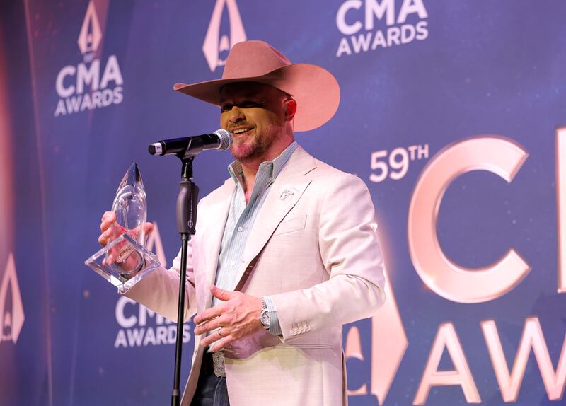 The 59th Annual CMA Awards - Press Room NASHVILLE, TENNESSEE - NOVEMBER 19: EDITORIAL USE ONLY Cody Johnson, winner of the Male Vocalist of the Year Award, poses in the press room during the 59th Annual CMA Awards at Bridgestone Arena on November 19, 2025 in Nashville, Tennessee. (Photo by Tibrina Hobson/Getty Images) (Tibrina Hobson/Getty Images)