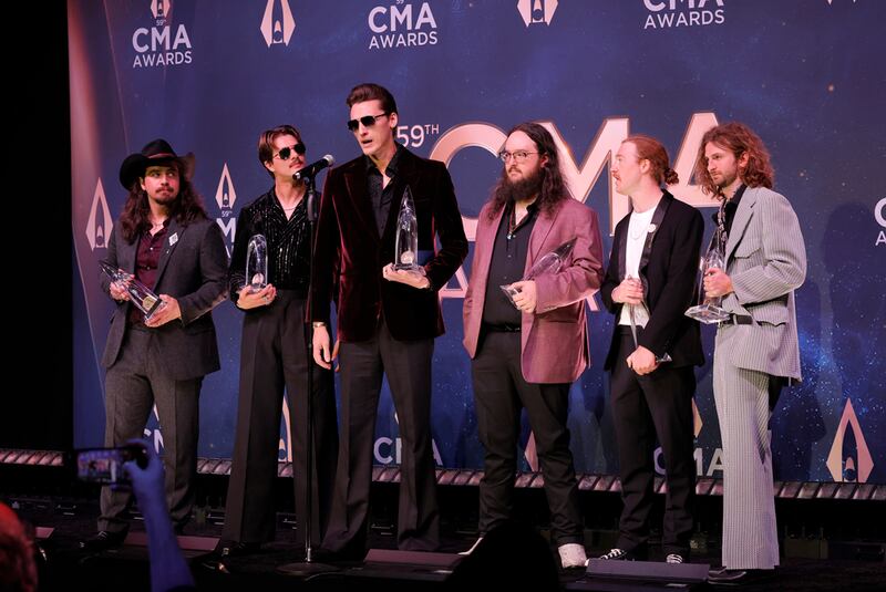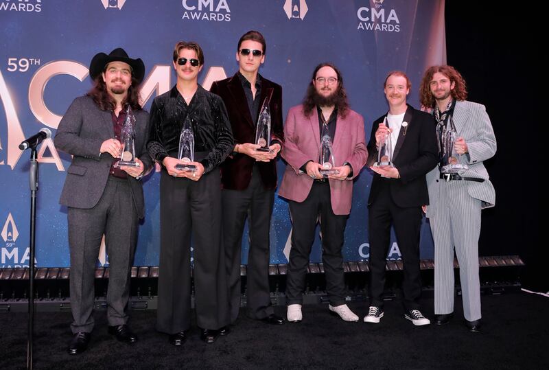 The 59th Annual CMA Awards - Show NASHVILLE, TENNESSEE - NOVEMBER 19: EDITORIAL USE ONLY Andrew Nix, Andrew Bishop, John Hall, Brandon Coleman and Sevans Henderson of The Red Clay Strays accept the Vocal Group of the Year Award onstage during the 59th Annual CMA Awards at Bridgestone Arena on November 19, 2025 in Nashville, Tennessee. (Photo by Jason Kempin/Getty Images) (Jason Kempin/Getty Images)