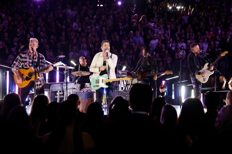 The 59th Annual CMA Awards - Show NASHVILLE, TENNESSEE - NOVEMBER 19: EDITORIAL USE ONLY (L-R) Trevor Rosen, Geoff Sprung, Matthew Ramsey and Brad Tursi of Old Dominion perform onstage during the 59th Annual CMA Awards at Bridgestone Arena on November 19, 2025 in Nashville, Tennessee. (Photo by Jason Kempin/Getty Images) (Jason Kempin/Getty Images)