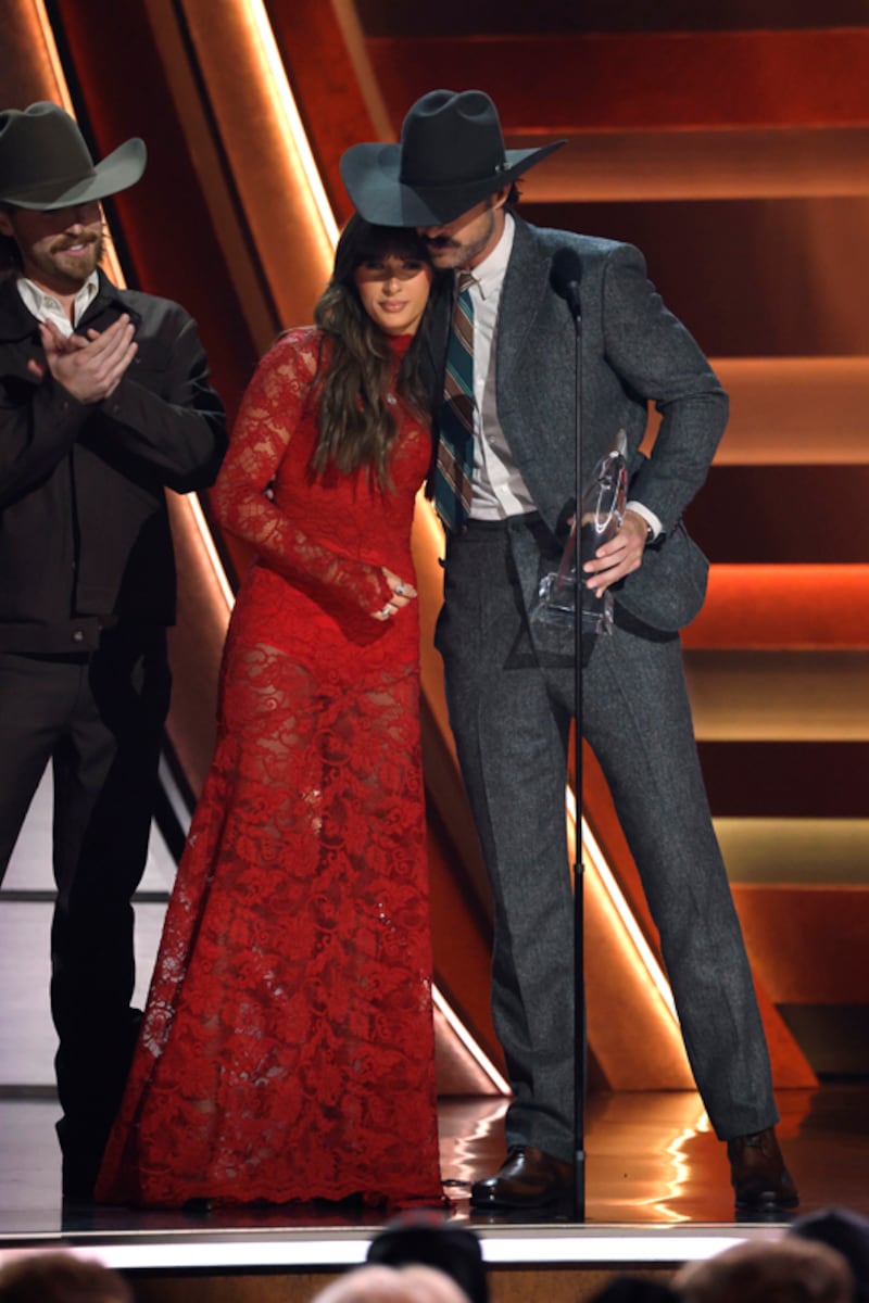 The 59th Annual CMA Awards - Show NASHVILLE, TENNESSEE - NOVEMBER 19: EDITORIAL USE ONLY (L-R) Ella Langley and Riley Green accept the Single of the Year Award for “you look like you love me” onstage during the 59th Annual CMA Awards at Bridgestone Arena on November 19, 2025 in Nashville, Tennessee. (Photo by Jason Kempin/Getty Images) (Jason Kempin/Getty Images)