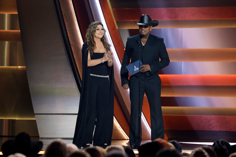 The 59th Annual CMA Awards - Show NASHVILLE, TENNESSEE - NOVEMBER 19: EDITORIAL USE ONLY (L-R) Gretchen Wilson and Ne-Yo speak onstage during the 59th Annual CMA Awards at Bridgestone Arena on November 19, 2025 in Nashville, Tennessee. (Photo by Jason Kempin/Getty Images) (Jason Kempin/Getty Images)