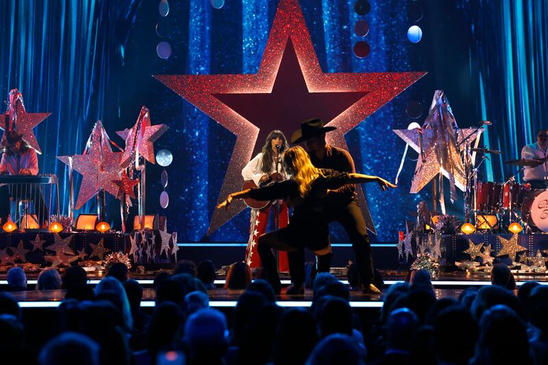 The 59th Annual CMA Awards - Show NASHVILLE, TENNESSEE - NOVEMBER 19: EDITORIAL USE ONLY (L-R) Host, Lainey Wilson and Charlie Worsham perform onstage during the 59th Annual CMA Awards at Bridgestone Arena on November 19, 2025 in Nashville, Tennessee. (Photo by Jason Kempin/Getty Images) (Jason Kempin/Getty Images)