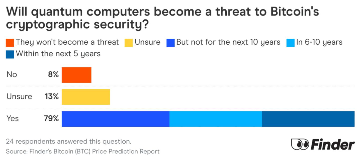 The vast majority of the panel (79%) see quantum computing as a threat to bitcoin’s cryptographic security. But, when those threats will appear has them split.