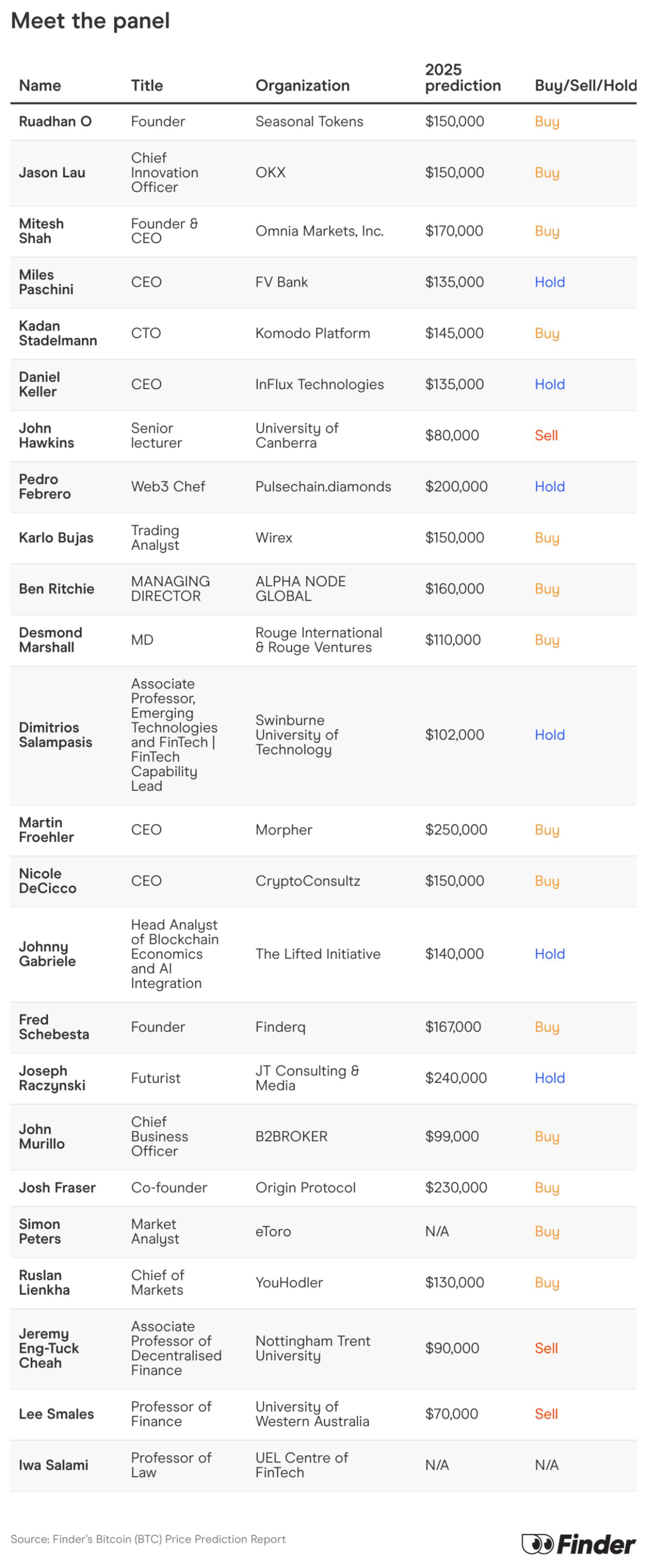 - Time to buy BTC: The majority of the panel (61%) say that bitcoin is currently a buy.