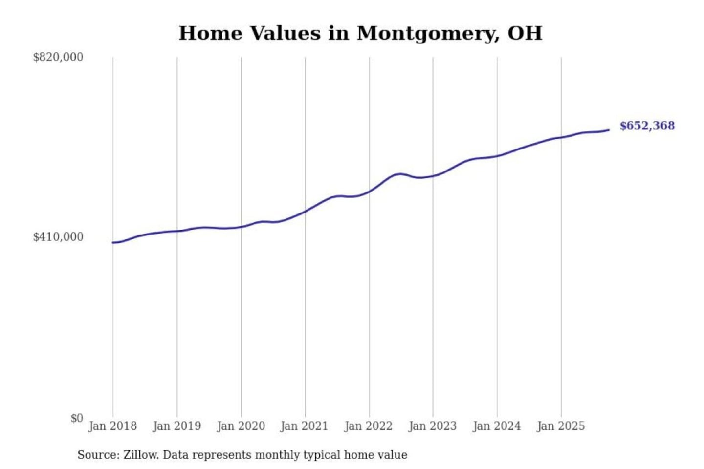 Stacker compiled a list of cities with the most expensive homes in the Cincinnati metro area using data from Zillow. Charts show the monthly typical home value since January 2018. Data was available for 177 cities and towns.