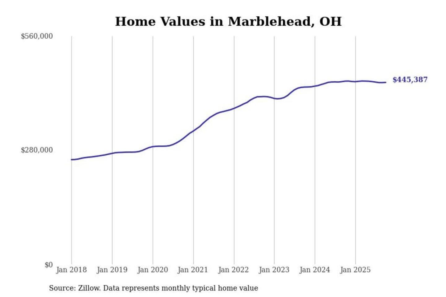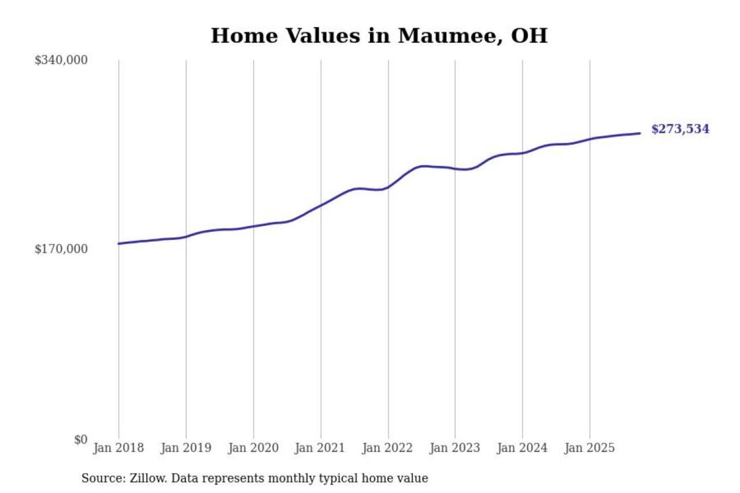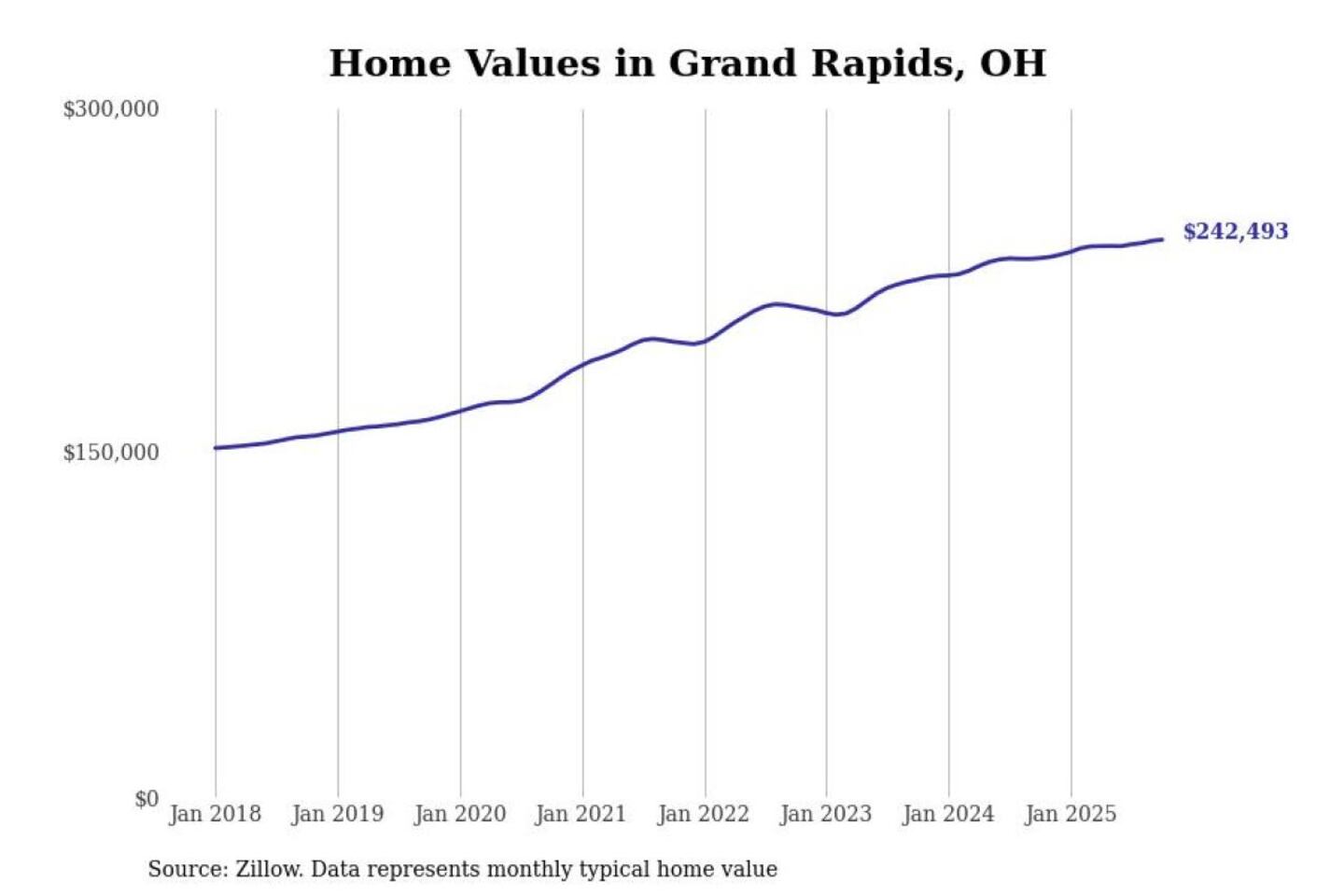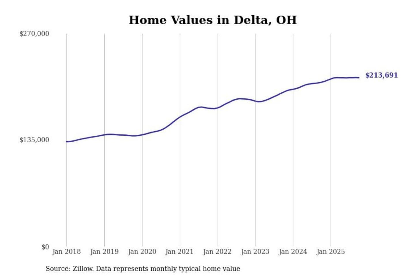 Stacker compiled a list of cities with the most expensive homes in the Toledo metro area using data from Zillow. Charts show the monthly typical home value since January 2018. Data was available for 49 cities and towns.