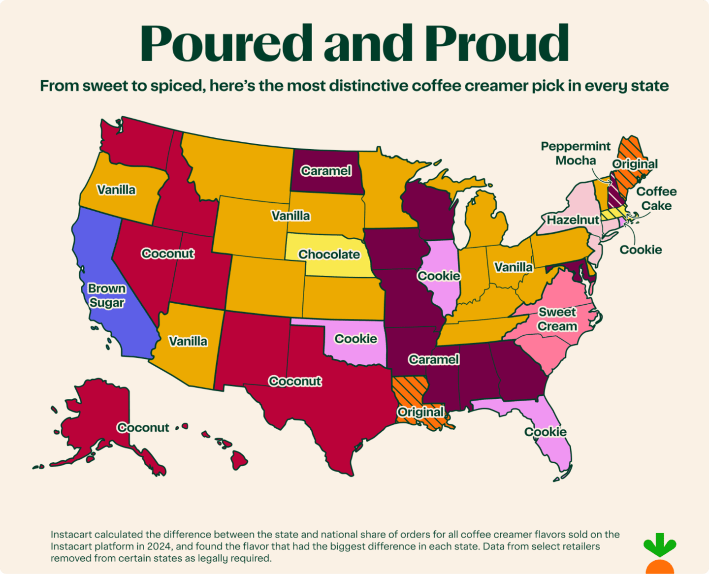 - Nuts for Coconut: States like Oregon, Arizona, Hawai'i, and Alaska crowned coconut as their top creamer.