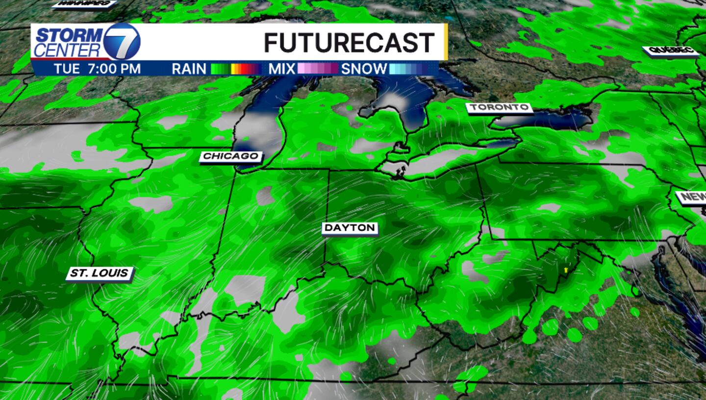 DAYTON — Rain chances are still in the forecast. Approaching Sunday night an area of low pressure will move closer to the Valley and attempt to flatten the ridge of high pressure that’s been holding firm. Our chances are dependent on the strength of the low.