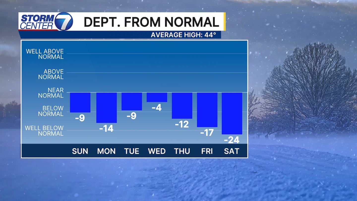 Monday morning will likely have wind chills or feels like temperatures in the single digits. After the system on Wednesday and by the time we get to next weekend, high temperatures could be stuck in the teens!