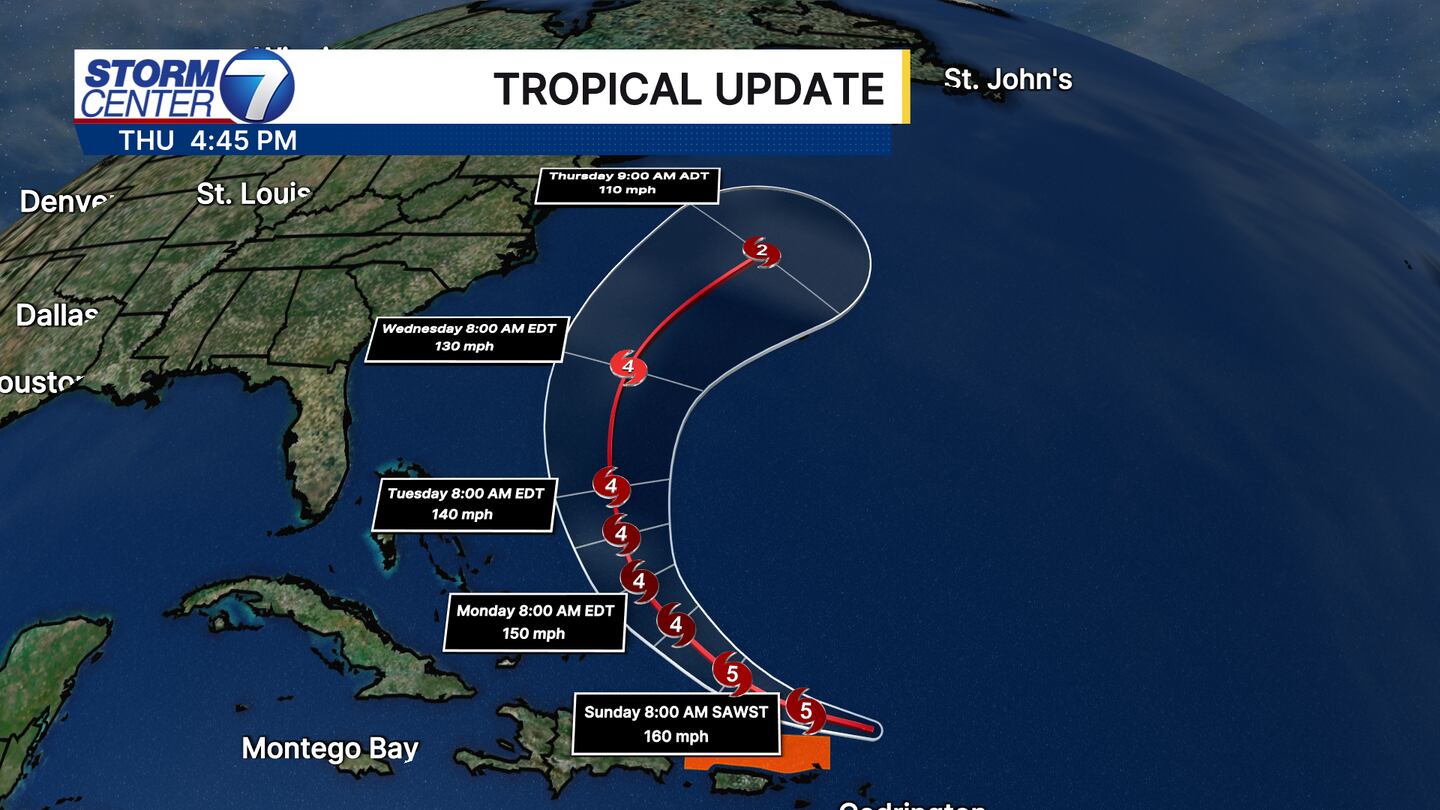 That front is helping keep Category 5 Hurricane Erin, as of Saturday afternoon, out to sea.