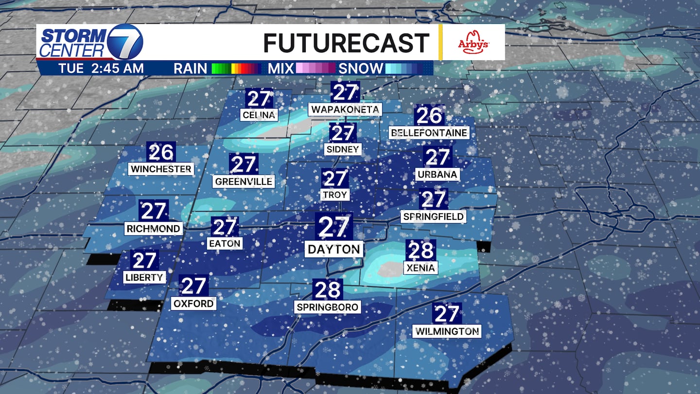 A Winter Weather Advisory has been issued for the entire Miami Valley, except for Randolph County, Indiana, from 7 p.m. Monday to 10 a.m. Tuesday.