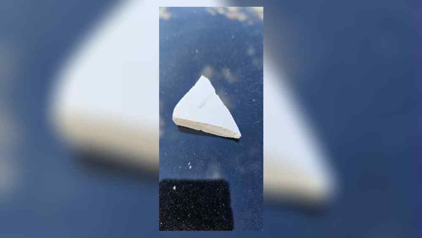 The photos show two different pieces of tile that damaged different cars, with others being on East Rose and Claremont Streets.