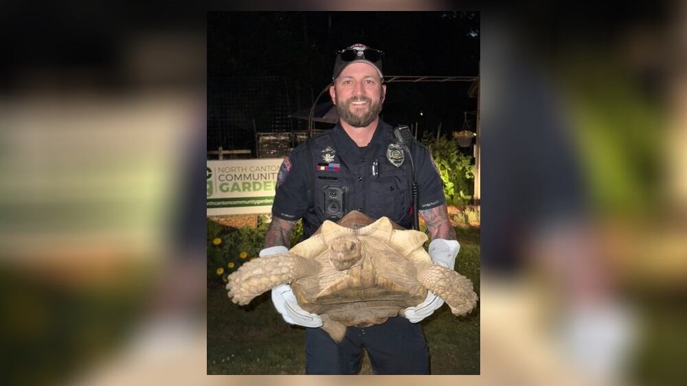 On Thursday night, North Canton Police Department Officers were dispatched to Church and Donner Ave on reports of a loose tortoise that was roaming through yards and into the roadway.