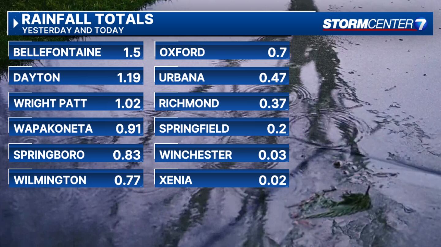 The graphic below give you a list of the highest rainfall totals from yesterday and today’s rain. Bellefontaine came in with 1.5 inches!