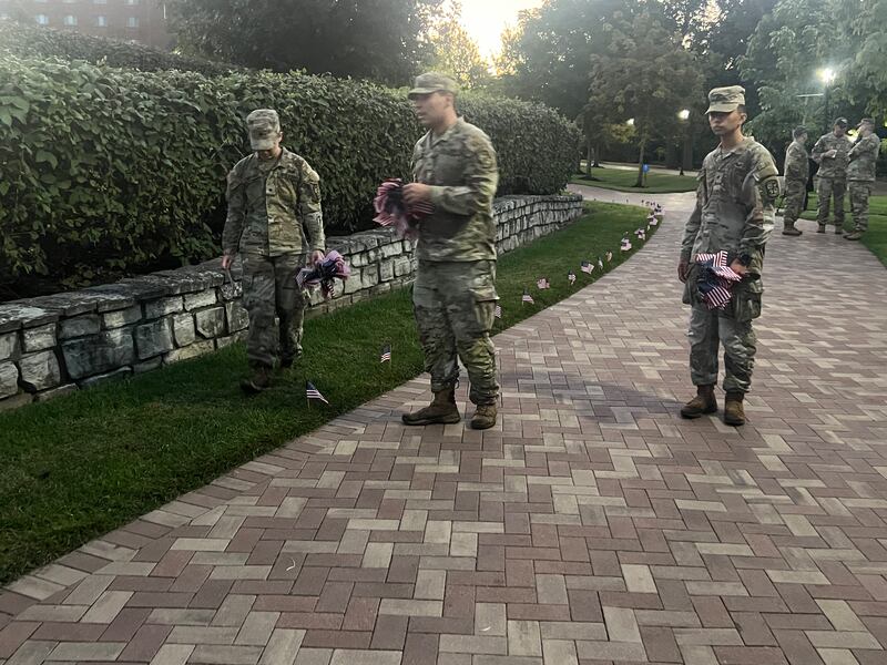 ROTC students at the University of Dayton placed 2,977 flags in the central mall to honor those who died on Sept. 11, 2001.