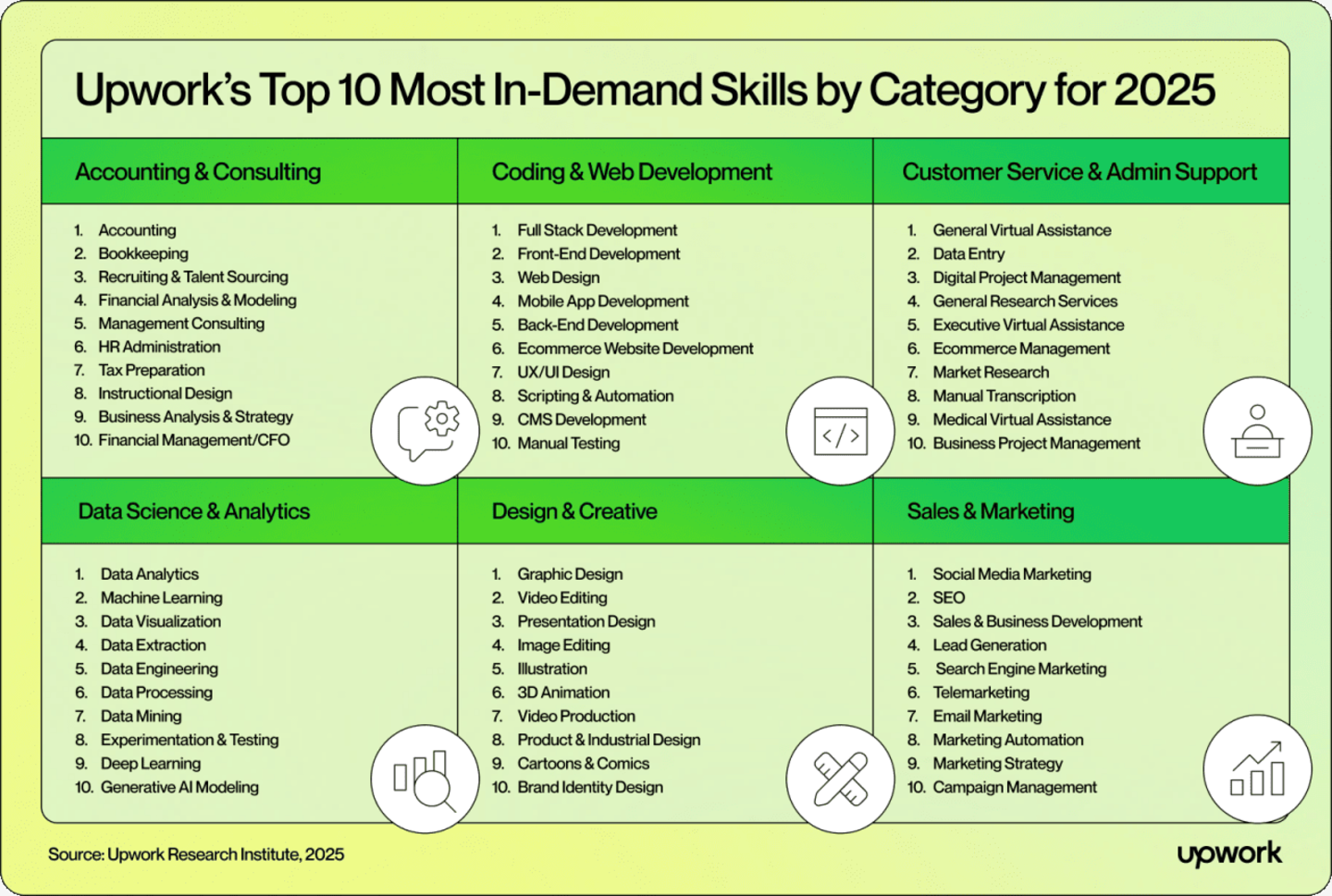 For those looking to take on new client work in 2025, these are some of the most in-demand skills—and related jobs.