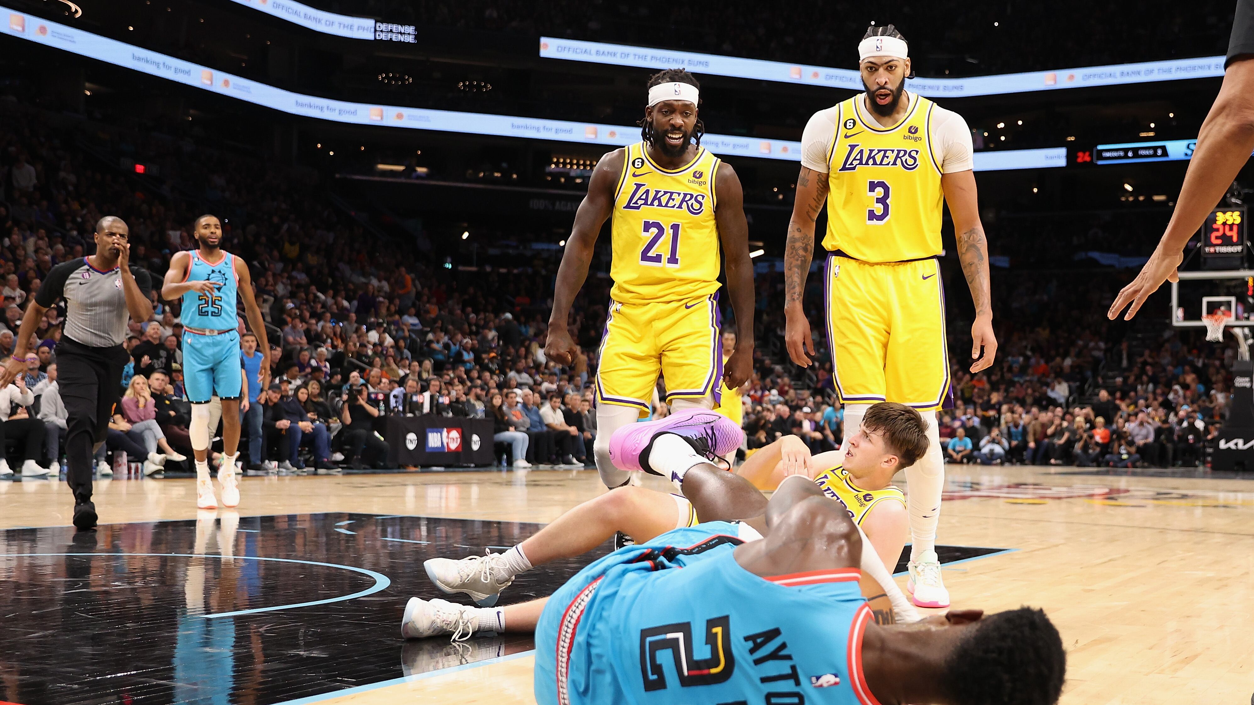 The incident occurred with just under four minutes to play in the fourth quarter of Tuesday's 115-105 Suns win. Suns star Devin Booker fouled Lakers guard Austin Reaves in the paint. Ayton approached Reaves and Beverley took exception to that. He shoved Ayton to the ground, leading to Beverley getting ejected. Booker received a flagrant 1 foul for his actions.