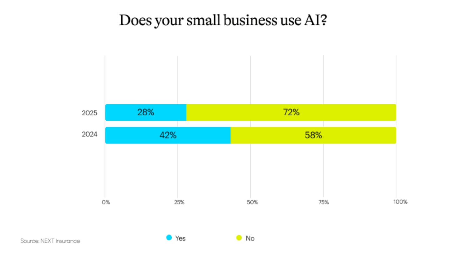 While 42% of small businesses reported using AI in 2024, our 2025 survey reveals a significant drop to just 28%. Why the loss of interest?