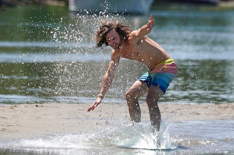 U.S. Heat Wave Drake Sweet skims across the water of the American River as the temperature climbed over the 100 degree mark in Sacramento, Calif., Friday, June 10, 2022. Forecasters are warning of dangerously high temperatures in much of the interior of California as high pressure grips the region. (AP Photo/Rich Pedroncelli) (Rich Pedroncelli/AP)