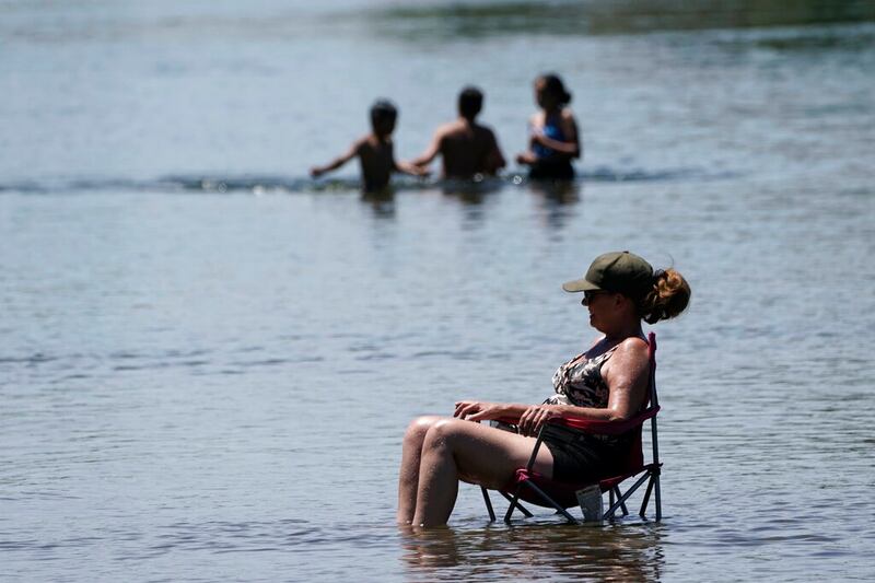 U.S. Heat Wave Dianna Andaya, relaxes in the cooling water of the American River as the temperature climbed over the 100 degree mark in Sacramento, Calif., Friday, June 10, 2022. Forecasters are warning of dangerously high temperatures in much of the interior of California as high pressure grips the region. (AP Photo/Rich Pedroncelli) (Rich Pedroncelli/AP)