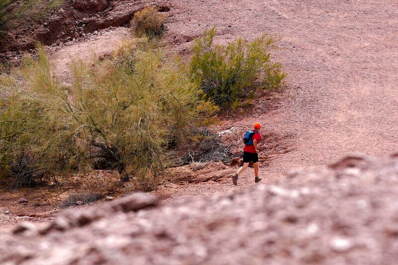 U.S. Heat Wave A jogger runs along a desert path in Papago Park as temperatures hit 110-degrees Fahrenheit Wednesday, June 8, 2022, in Phoenix. (AP Photo/Ross D. Franklin) (Ross D. Franklin/AP)