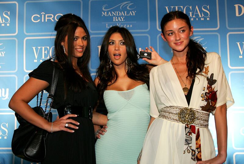 Photos: Kim Kardashian's fashion through the years. LAS VEGAS - JUNE 16: (L-R) Carla DiBello, socialite Kim Kardashian, and actress Caroline D'Amore arrive at the fourth anniversary party for Vegas Magazine on the closing night of the CineVegas film festival at the Mandalay Bay Resort & Casino June 16, 2007 in Las Vegas, Nevada. (Photo by Ethan Miller/Getty Images for CineVegas) (Ethan Miller/Getty Images for CineVegas)